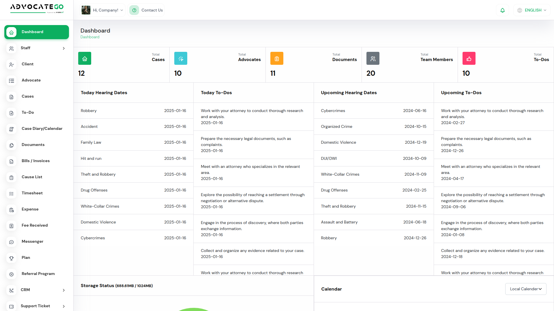 Modul Kalendar unutar AdvocateGo olakšava efikasno upravljanje zakazanim obavezama i saslušanjima- ročištima.